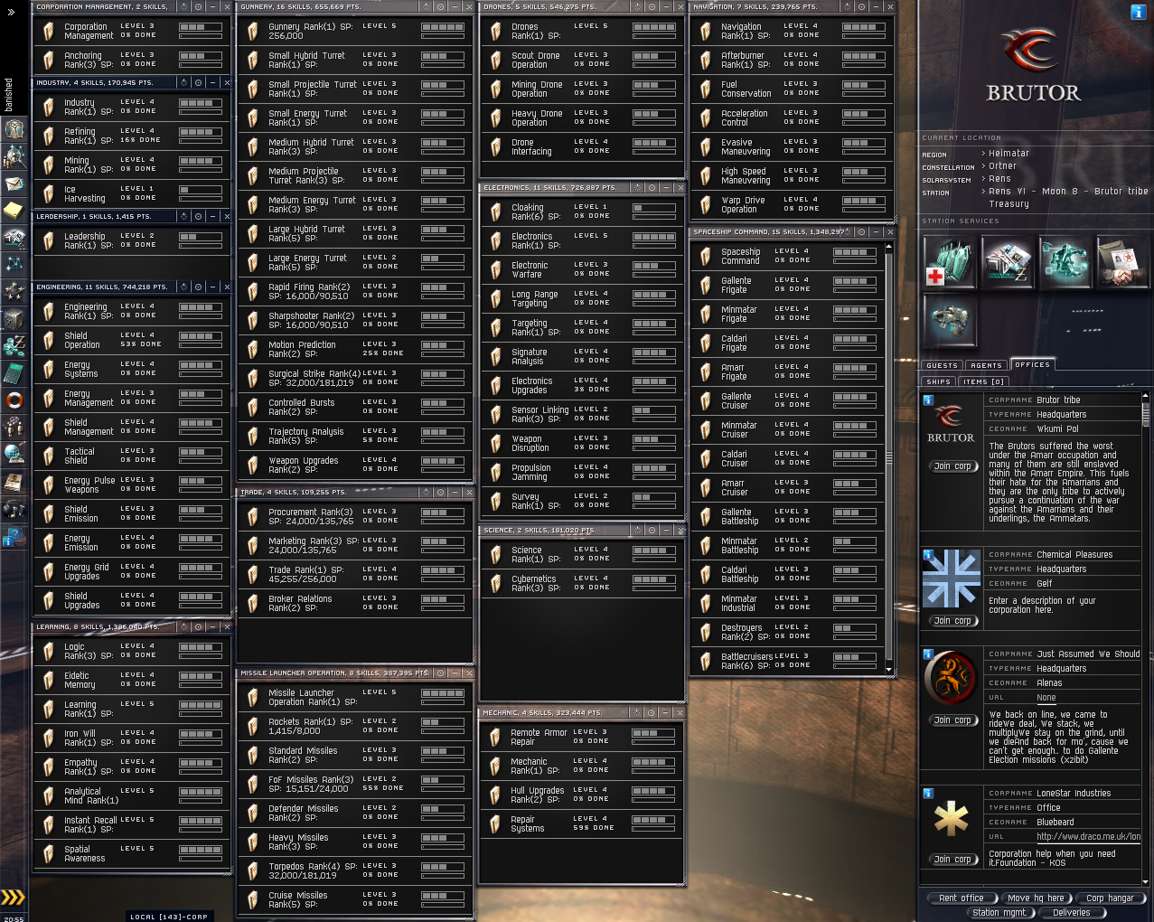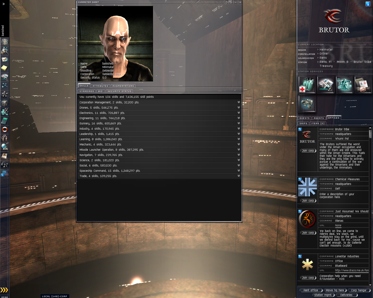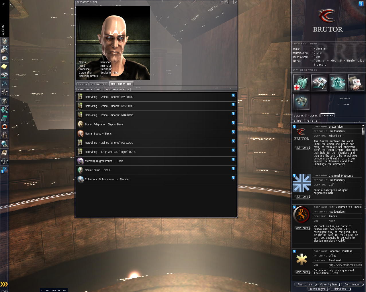 Security Status 5.0 He has various items dotted around Heimatar and around 10 mil in his wallet which are included. He has no enemies. He also has 10 implants plugged in.(5 learning/5 Hardwiring) These can be viewed in the links.