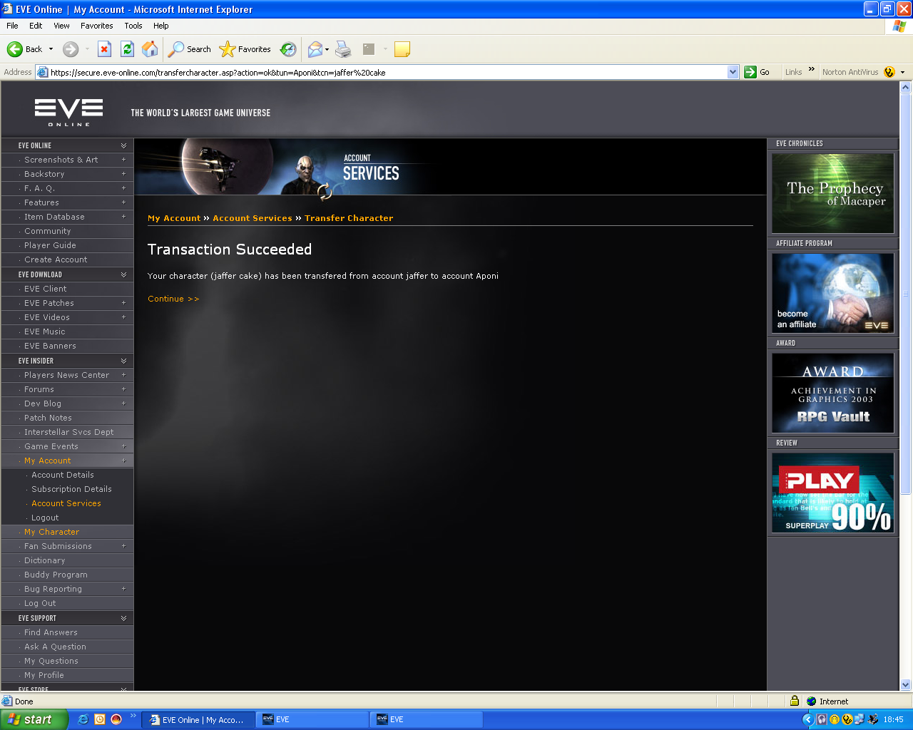 Edited by: bungle2k 2 on 02/11/2005 14:54:41 Looking to sell 5.8 mil gal char, has been used for hauling, building, and researching BPOÆs, can fly ity 5, and all gal tech 1 frigs and cruisers, has perfect build and can use 4 factories (by time char is sold), has metallurgy lvl 5, research lvl 4(by time char is sold) and science lvl 5 can also use 6 labs, has only been in one none NPC Corp with was mining and building corp, has no augmentations and 0.0 sec status (can post more screenies if needed)