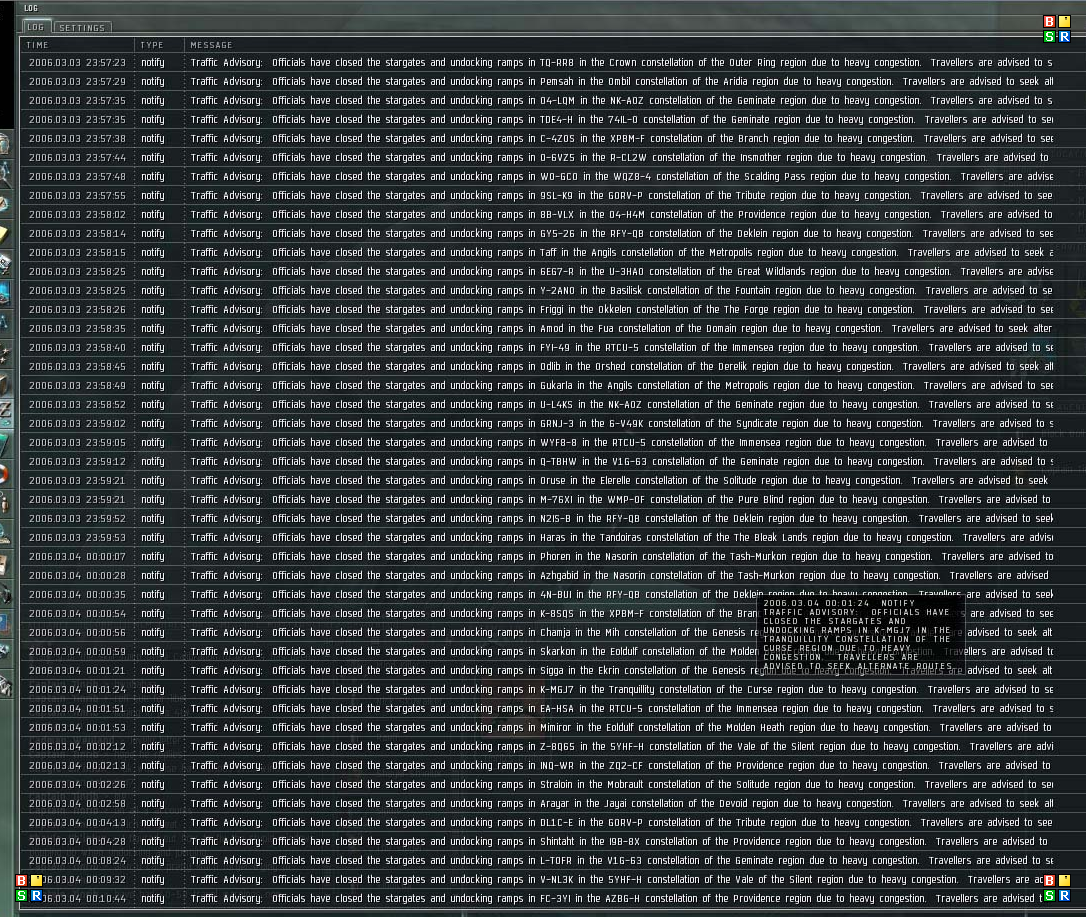 Just imagine the scennario, if a fleet is jumping into a notehr fleet camping the gate, and the trafic advisor prevent half the gang to go in. CCP will have some realy realy pised ppl, and a few hunder petitions for reinbuhment... - POST WITH YOUR MAIN!