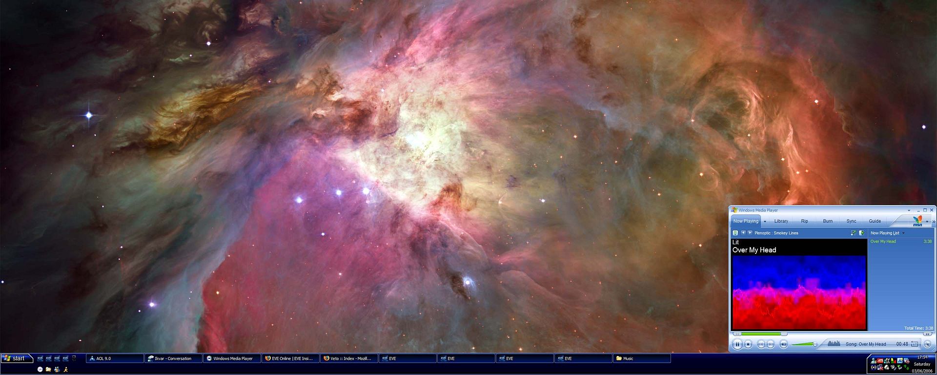Originally by: Sevarus James Well, my sign link has EVE running, but that desktop isn't the current "look", so here be mine.