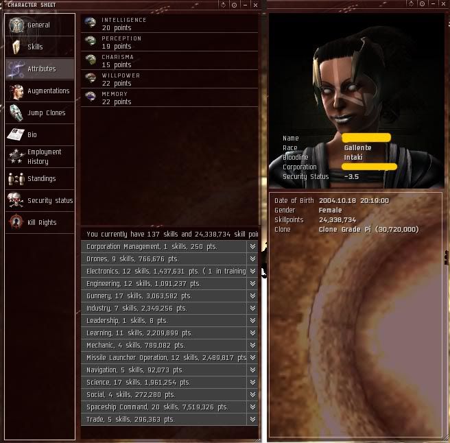 One close look at this character and it is clear it is not wasted. I would gladly sell my other 2 characters and isk to boot to be able to have just this one character it is terrific and alot of time went into it. That alone should be worth praise and admiration, great job and hats off to you