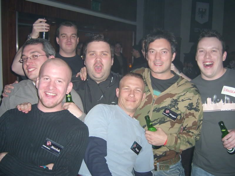 http://winterblink.com/galleries/eveff06/IMG_0154.jpg I'm the second one from the left (standing), ;p I'm also seen standing behind the content team with an amarr t-shirt, also looking evil for some reason :p I'll try to post a NAGA group picture here when I locate the guy who took it, hopefully I look normal there